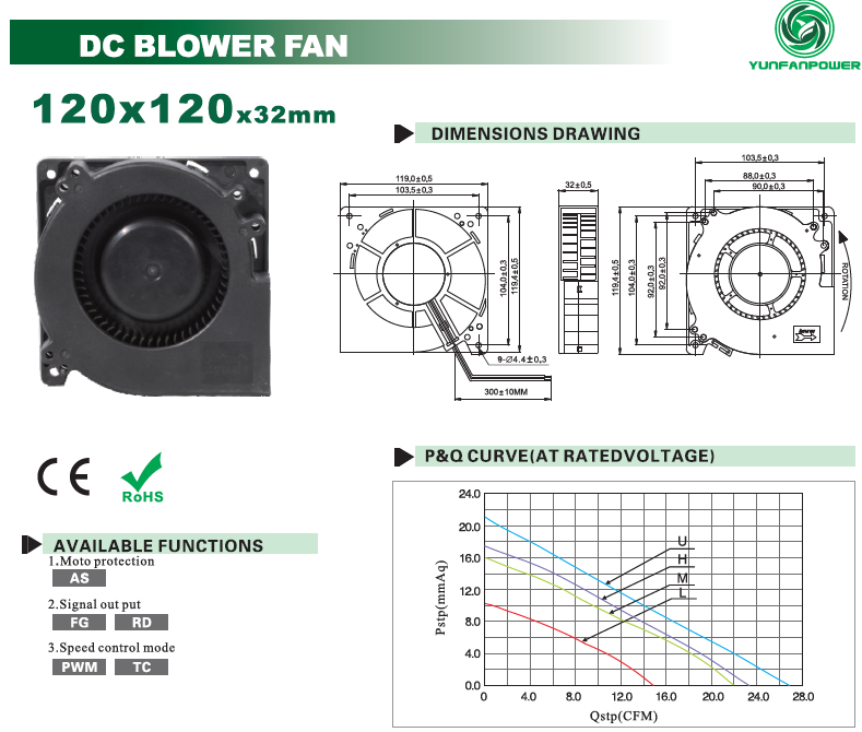 | YFB12032B48H | 24 | 0.35 | 16.8 | 2800 | 0.66 | 17.29 | 48.5 |
